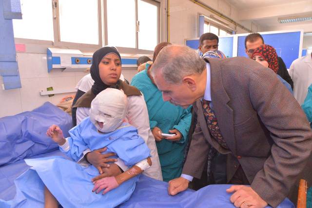 محافظ أسيوط يزور الطفلة نوران بالمستشفى الجامعي إثر تعرضها لصعق كهربائي ويوجه بتقديم أوجه الرعاية الصحية
