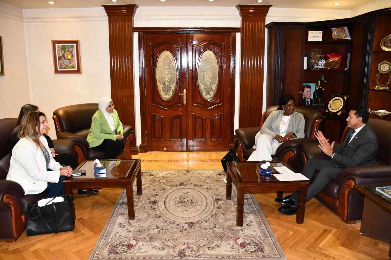 وزير الشباب يبحث مع ممثلة صندوق الأمم المتحدة للسكان التعاون فى ملف التوعية بالتغيرات المناخية