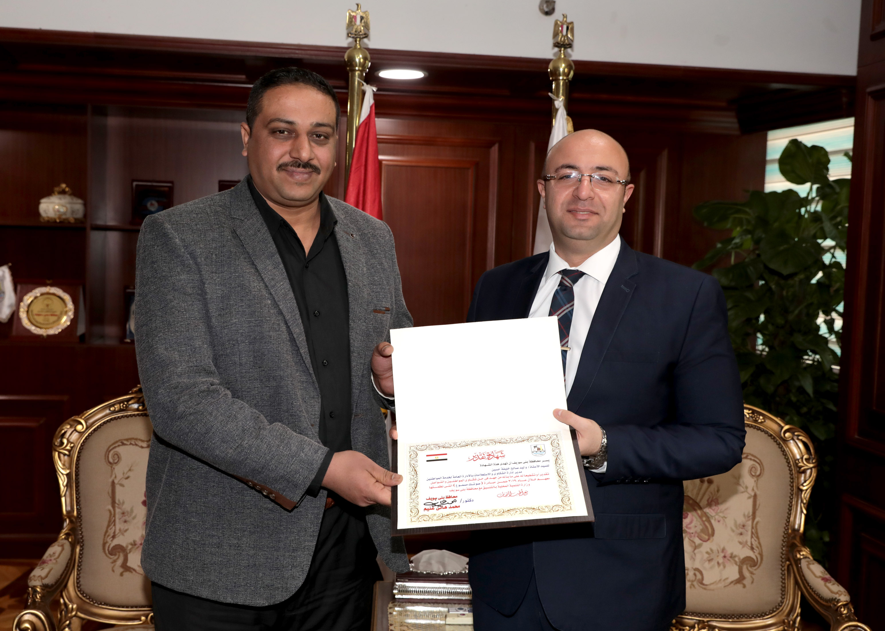 المحافظ يكرم فريق مبادرة (صوتك مسموع)ببني سويف