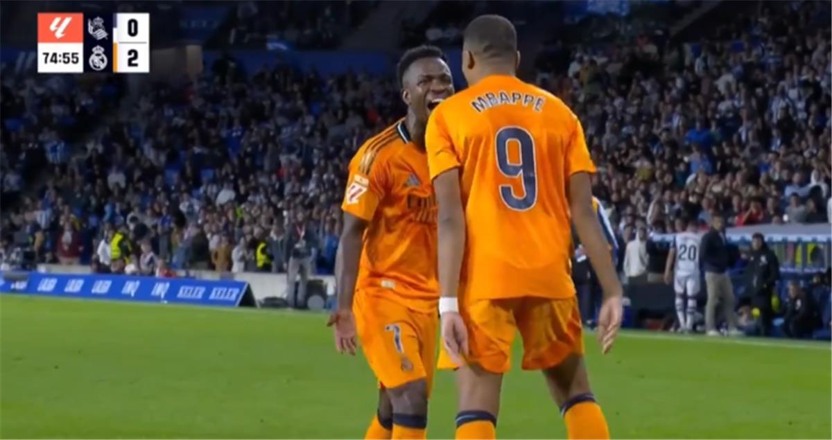 مبابي يسجل هدف ريال مدريد الثاني أمام ريال سوسيداد من ضربة جزاء