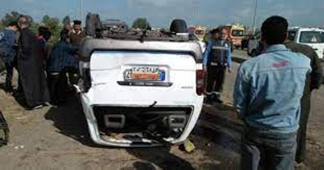 مصرع وإصابة 2 في انقلاب سيارة أعلى الطريق الأوسطي