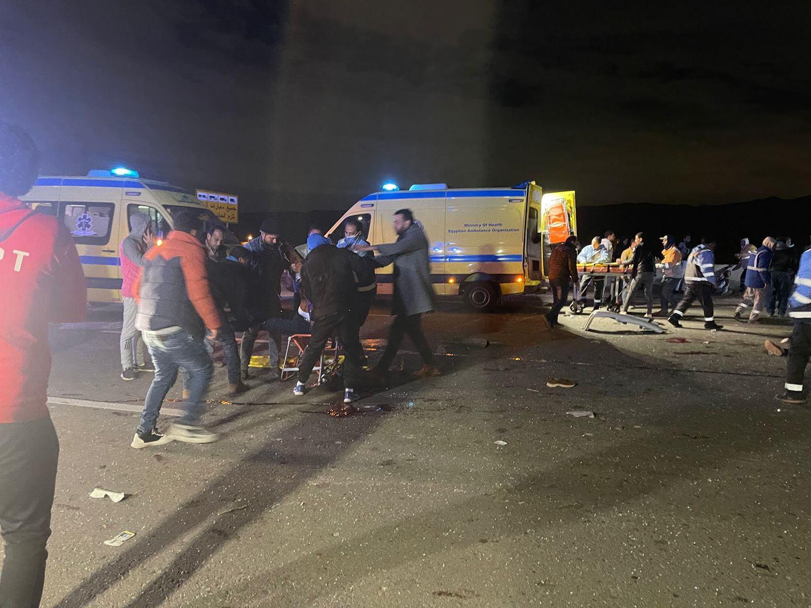 إصابة 12 في انقلاب ميكروباص أعلى الطريق الأوسطي