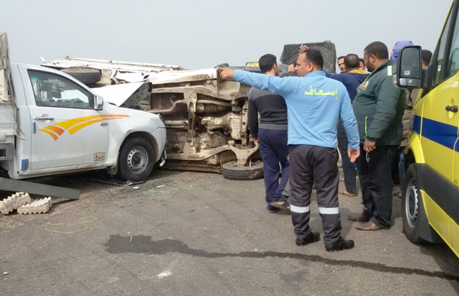 مصرع 4 وإصابة آخرين في حادث ميكروباص بالطريق الأوسطي