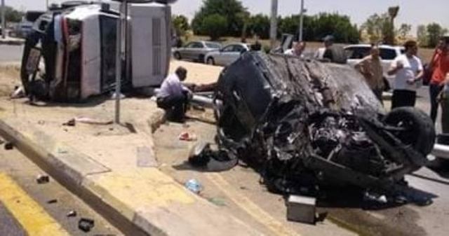 مصرع 2 إثر تصادم سيارة بعمود إنارة بطريق السويس الصحراوى