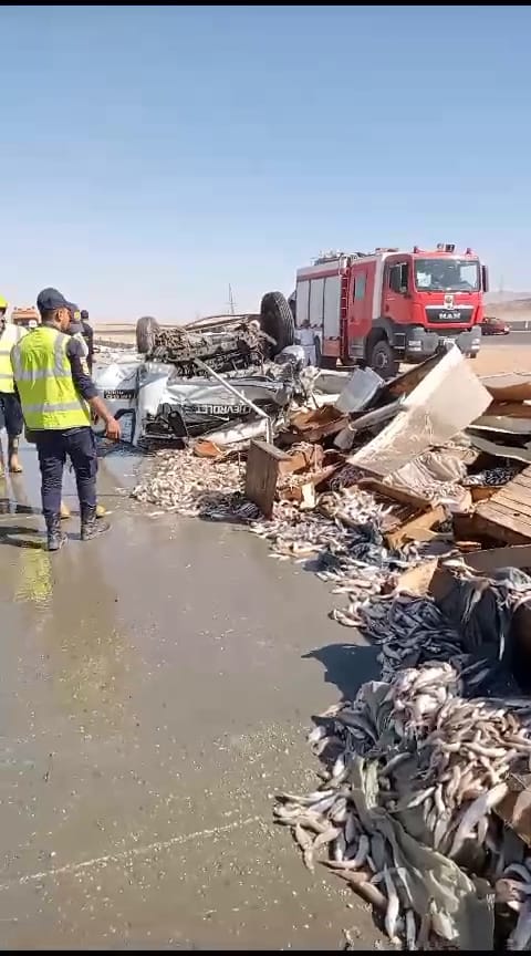 انقلاب سيارة محملة بالأسماك ومصرع قائدها بطريق السويس