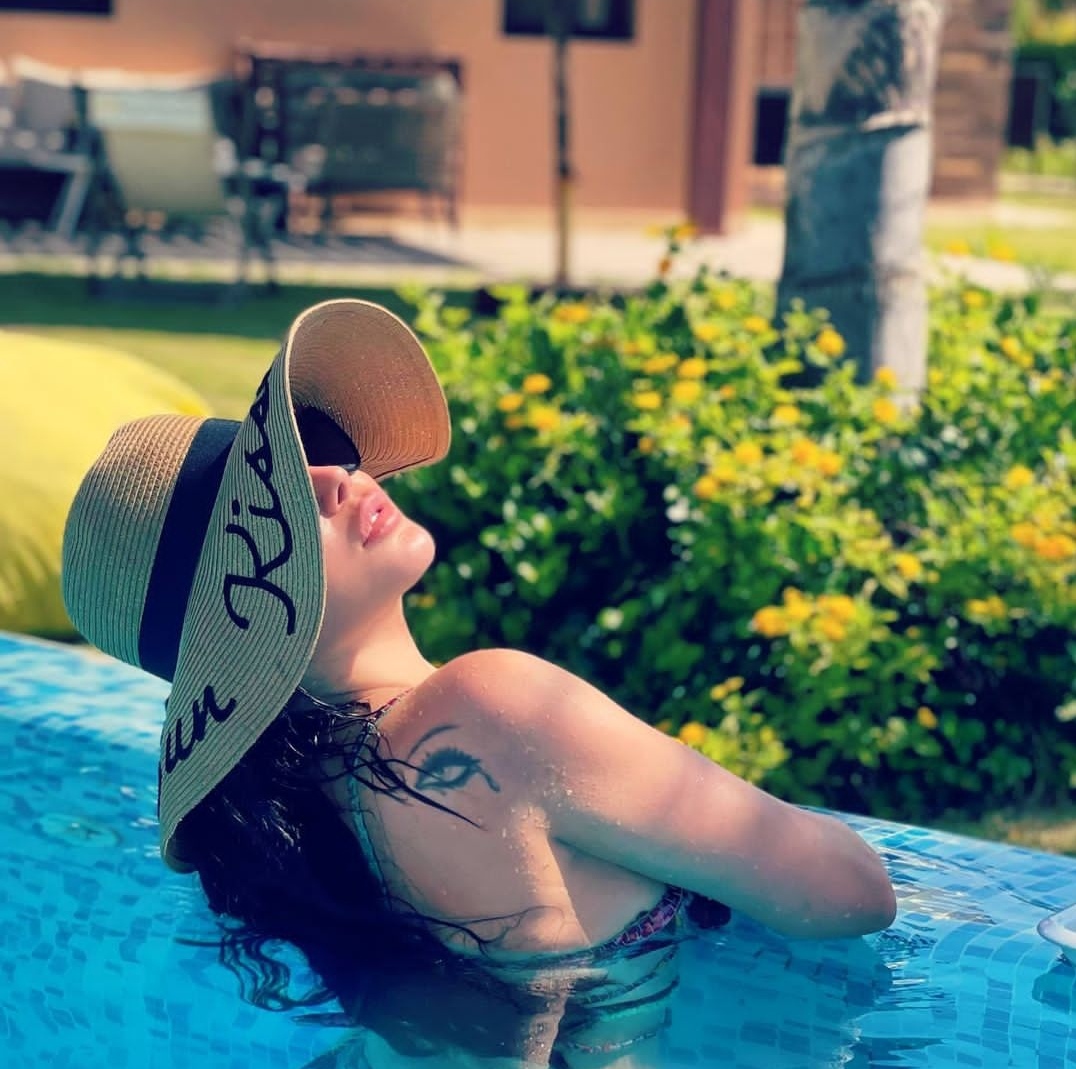 فنانة مشهورة تخلع قميصها وتستعرض وشم غصن الزيتون على ظهرها.. صور