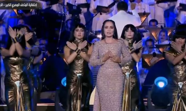 بالفيديو.. لحظة ظهور شيريهان فى حفل افتتاح المصرى الكبير