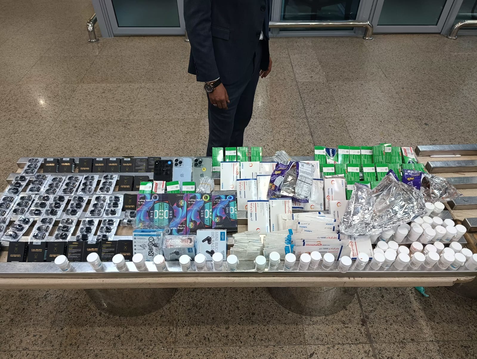إحباط محاولات تهريب أدوية وعدسات لاصقة بمطار القاهرة..صور