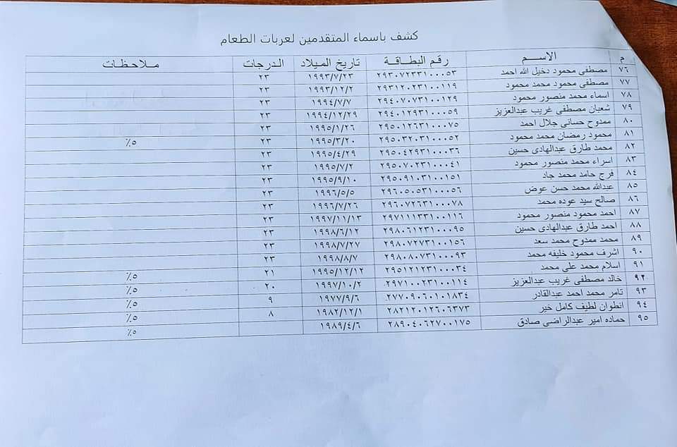 أسماء المستحقين للحصول على عربات الطعام المتنقلة كدفعة أولى من المرحلة الأولى بالغردقة