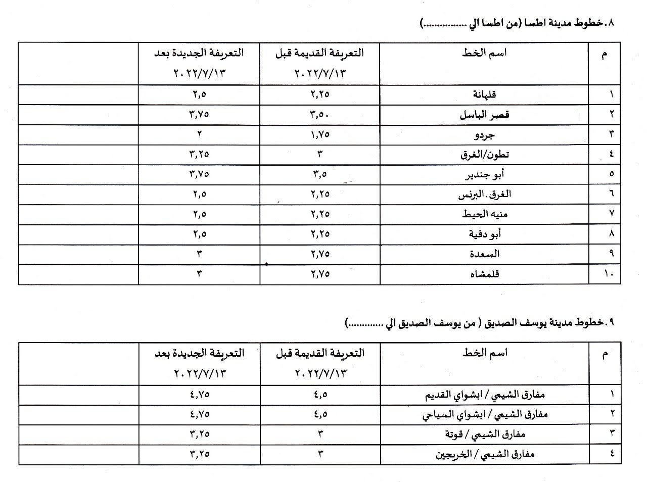 ننشر تعريفة الركوب الجديدة بمختلف مدن وقرى قنا