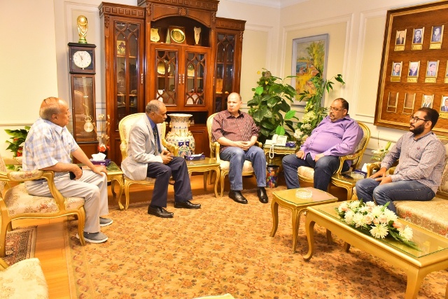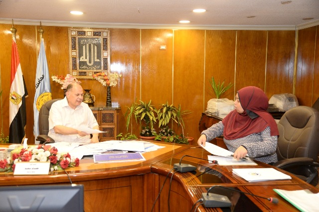 عصام سعد يستقبل رئيس الجامعة ونائب شئون خدمة المجتمع لتقديم واجب العز