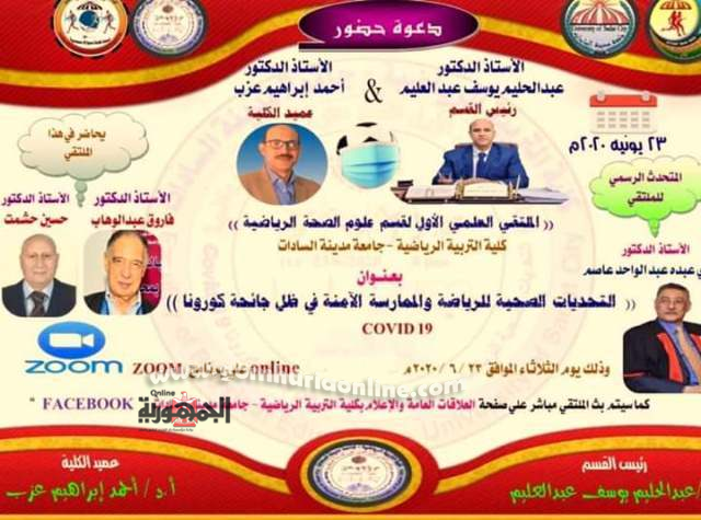 التربية الرياضية بالسادات تعقد الملتقى العلمى الأول لعلوم الصحة الرياضية خلال جائحة كورونا