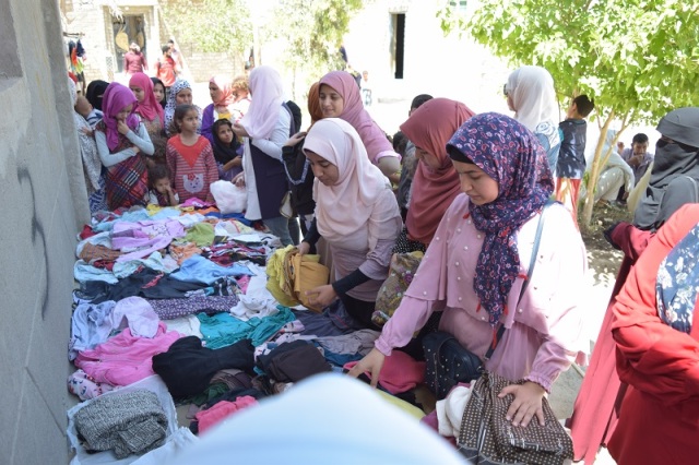 كراتين رمضان وملابس، وتركيب وصلة مياة بقرية علي حمودة ببنى سويف