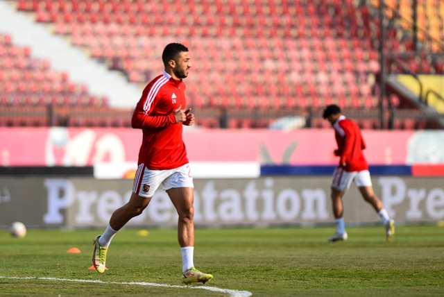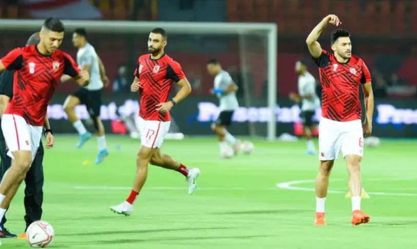 لاعبو الاهلى يجرون عمليات الاحماء استعدادا لمواجهة "ذئاب الجبل"