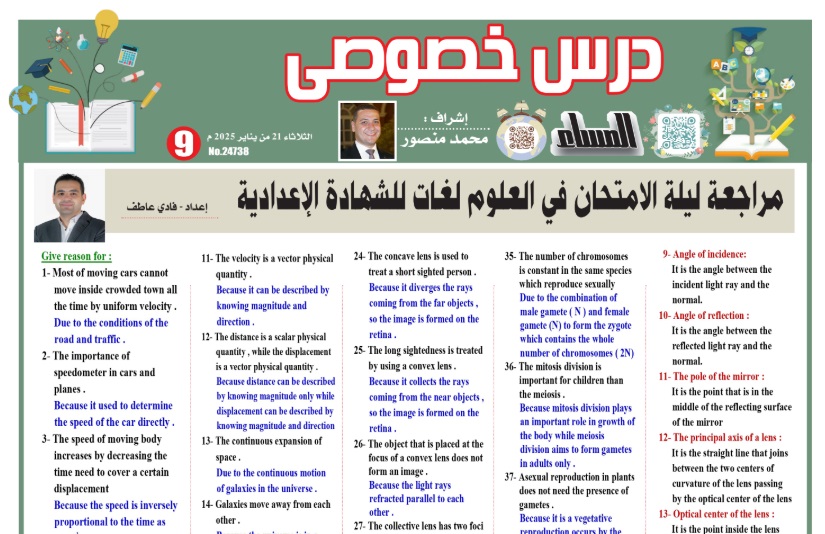 مراجعة نهائية في العلوم لغات للشهادة الإعدادية..لن يخرج عنها الامتحان