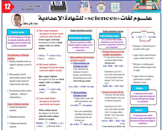 مراجعة العلوم للشهادة الإعدادية لن يخرج عنها الامتحان