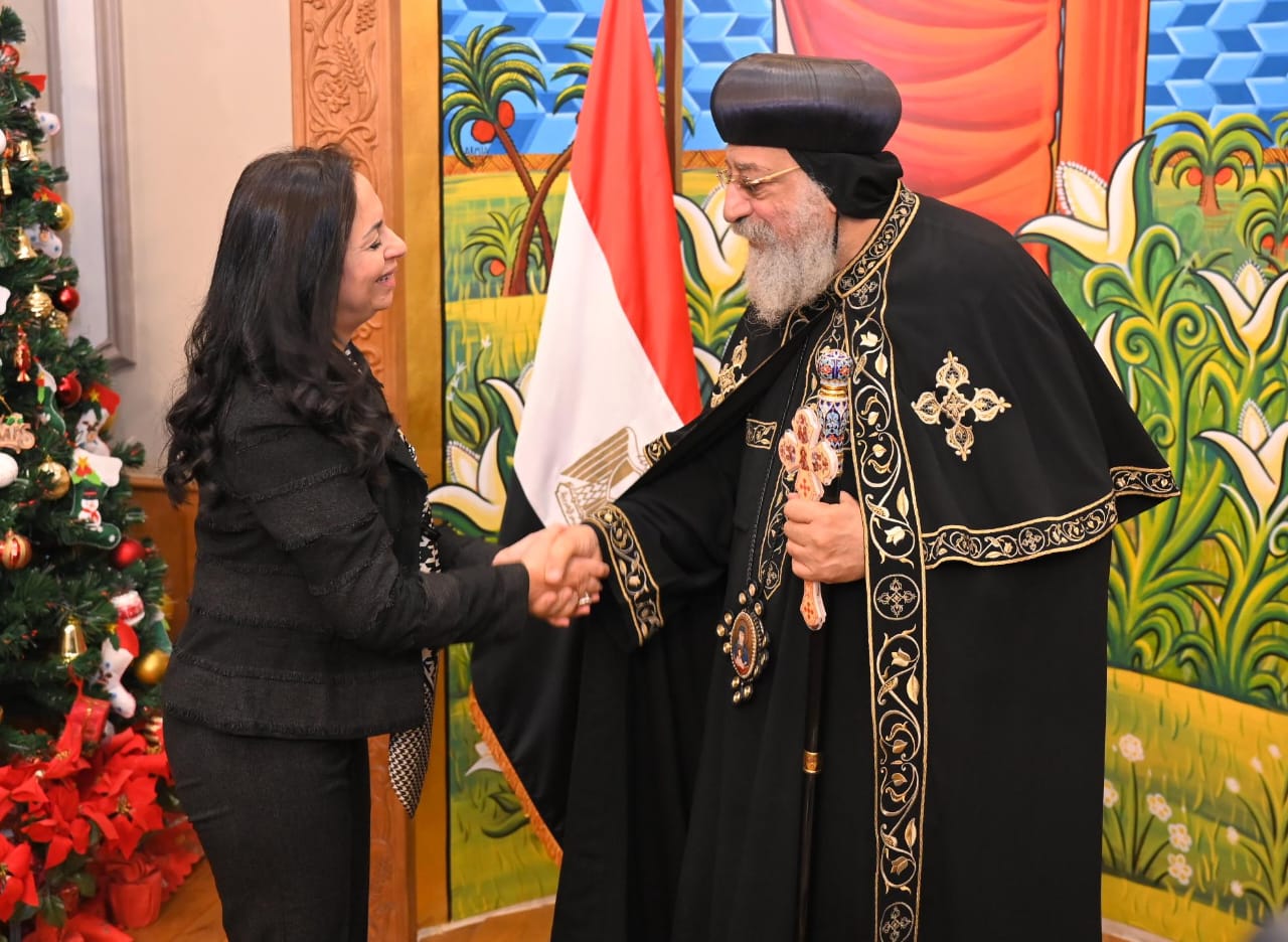 وزيرة التضامن تزور البابا تواضروس الثانى للتهنئة بعيد الميلاد المجيد