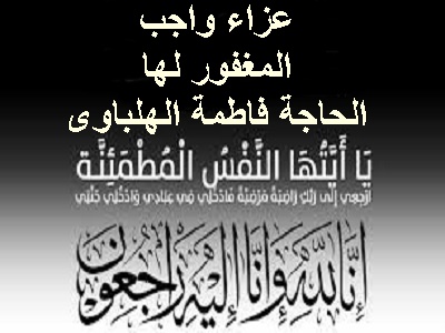 عزاء واجب .. وفاة المغفور لها الحاجة فاطمة الهلباوى