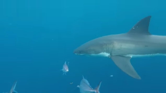 قرش ضخم يفقد فريسته فيهاجم غواصا..فيديو