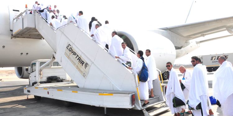 140 حاجا من أسر الشهداء يعودون للقاهرة بعد اداء فريضة الحج