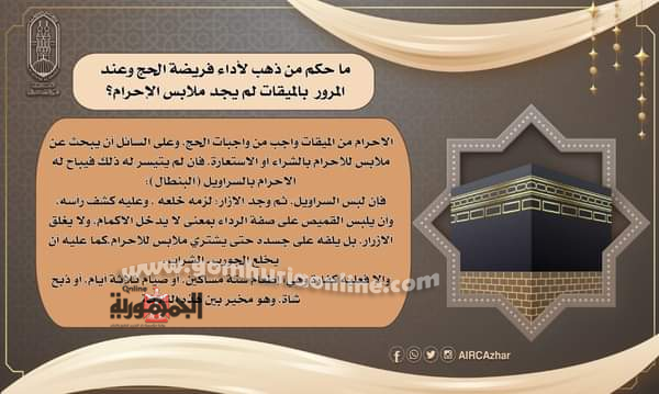 ما حكم من ذهب لأداء فريضة الحج وعند المرور بالميقات لم يجد ملابس الإحرام؟ البحوث الإسلامية يوضح