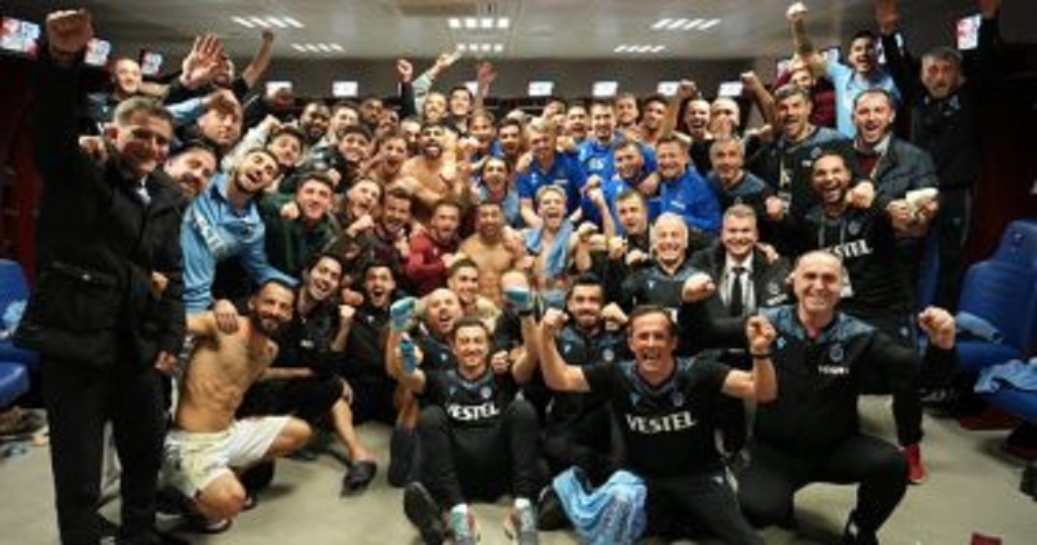 تريزيجيه يحتفل مع لاعبى طرابزون بالفوز على فناربخشة