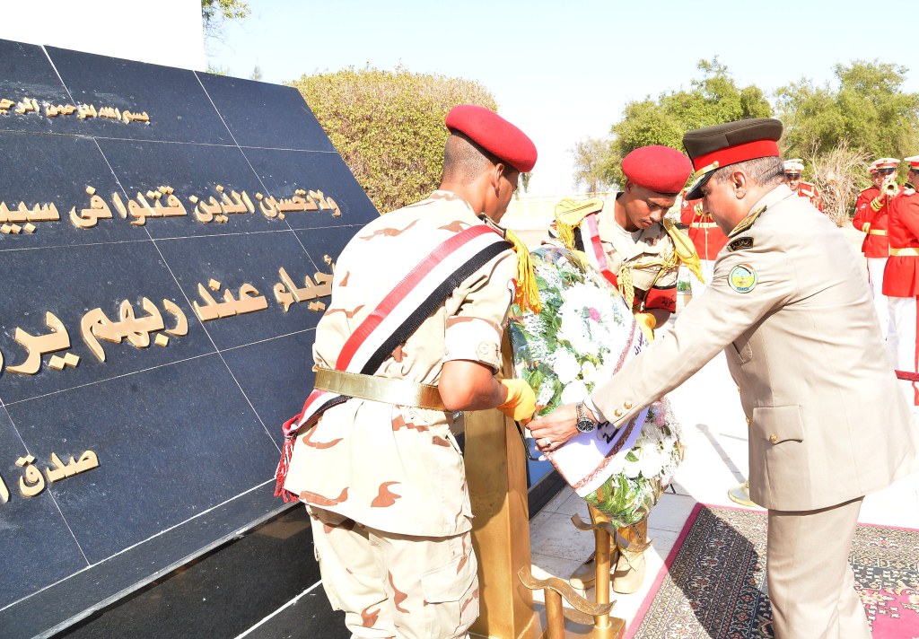 محافظ أسيوط وقائد المنطقة الجنوبية العسكرية يضعان إكليل الزهور على قبر الجندي المجهول
