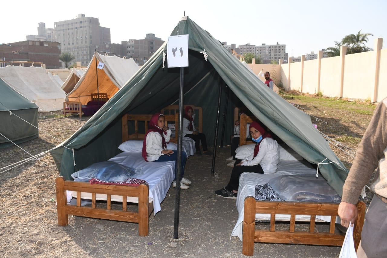 محافظ الفيوم ورئيس أركان الدفاع الشعبي والعسكري يتفقدان "معسكر إيواء" بنادي قارون الرياضي
