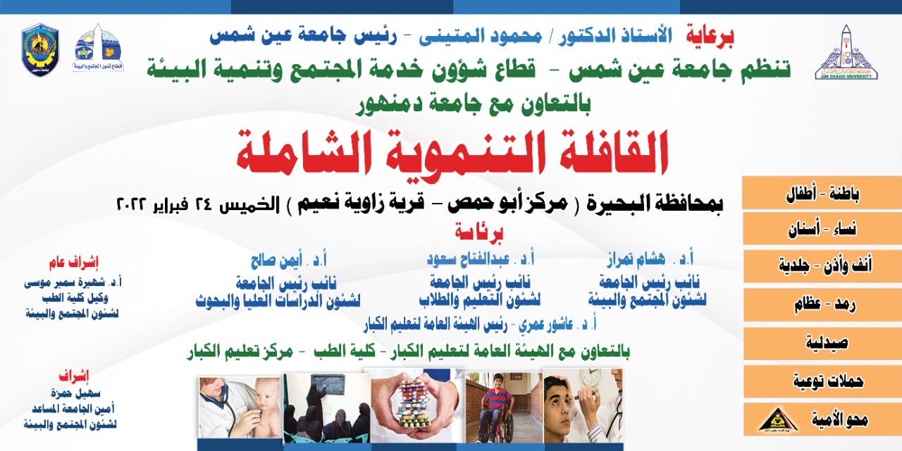 جامعة عين شمس تطلق قافلة تنموية شاملة لمحافظة البحيرة..غداً