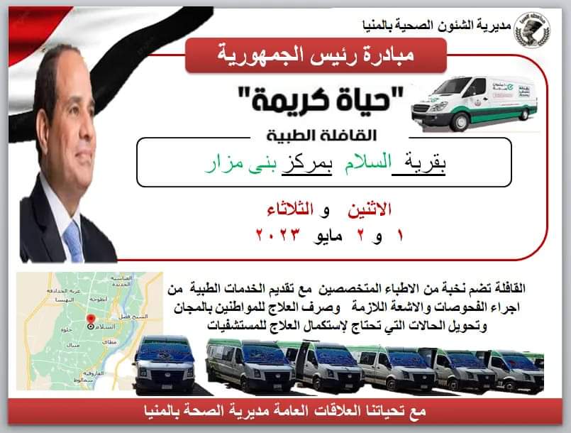 غداً ... صحة المنيا تنظم قافلة طبية بقرية السلام ببني مزار