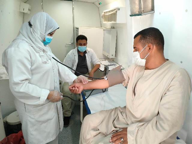 الكشف علي ٦٠٠ حاله في اليوم الاول للقافله الطبية بقرية السلام بمدينة الحمام بمطروح