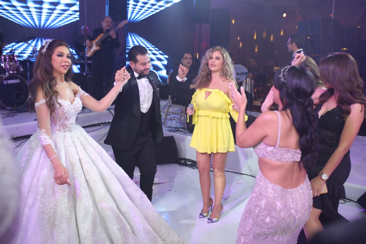 نيكول سابا تشعل الرقصات في زفاف نسمة فاضل والأمين خيل بسواريه أصفر قصير