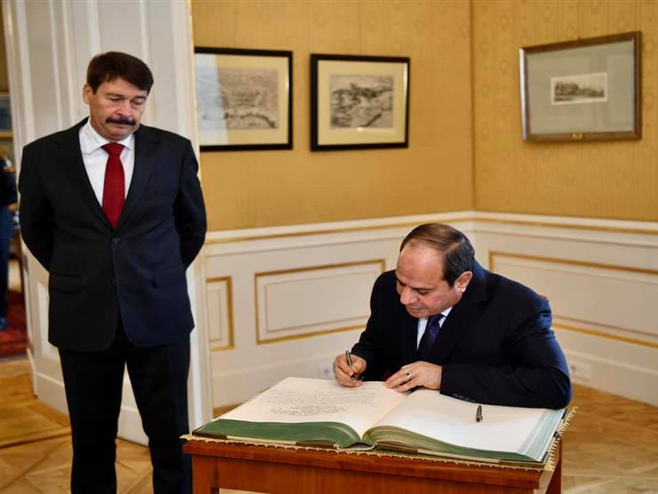 الرئيس السيسي يكتب كلمة في سجل الشرف بقصر الرئاسة المجرية