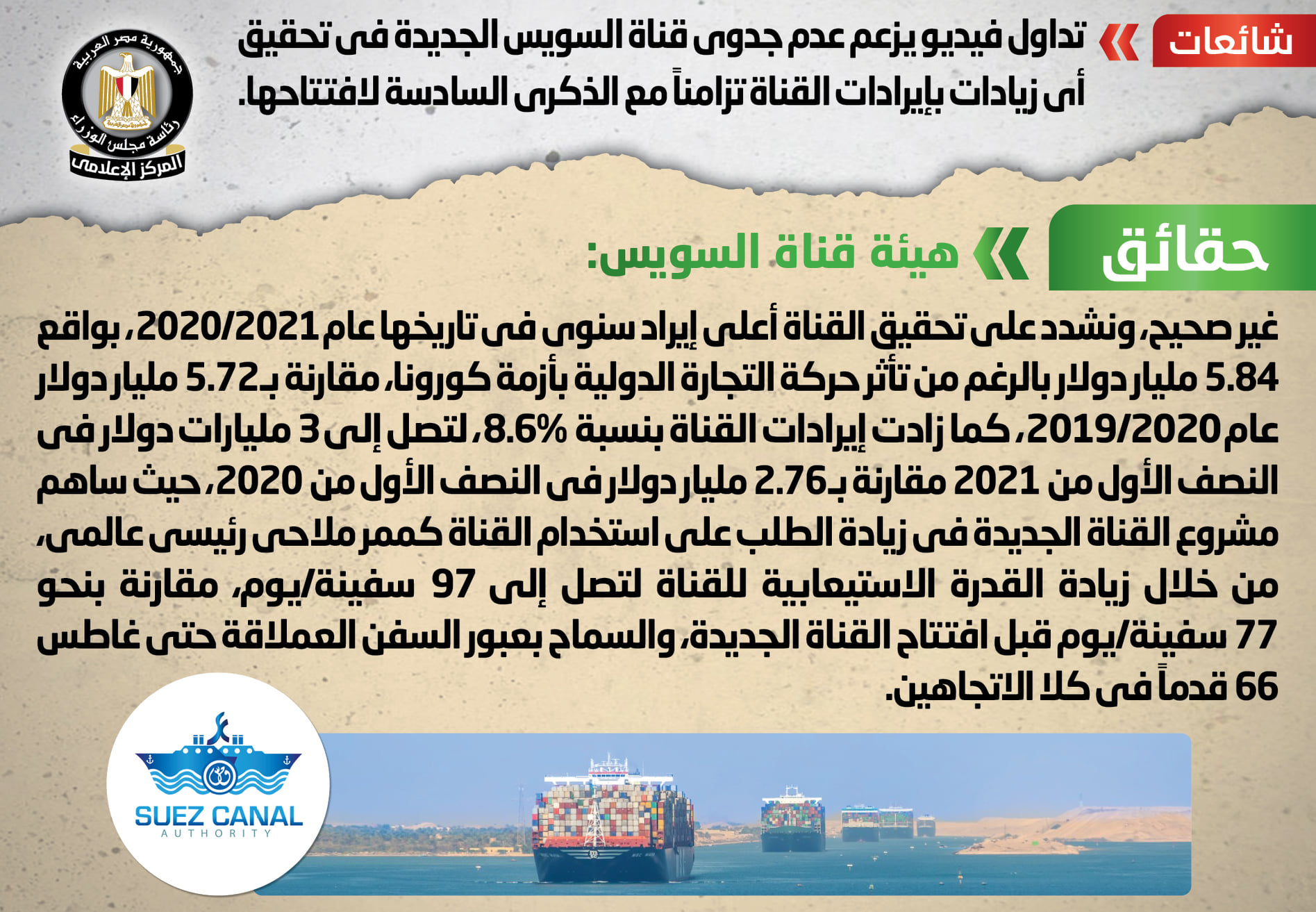الحكومة تنفى شائعة تداول فيديو يزعم عدم جدوى قناة السويس الجديدة