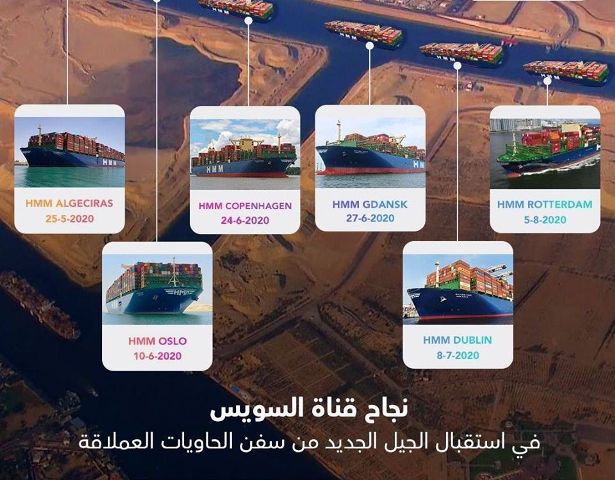تزامنا مع الذكرى الخامسة للإفتتاح . قناة السويس الجديدة تستقبل جيلا جديدا من سفن الحاويات العملاقة . صور