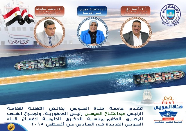 رئيس جامعة القناة تقدم التهنئة بالذكرى الخامسة لافتتاح قناة السويس الجديدة