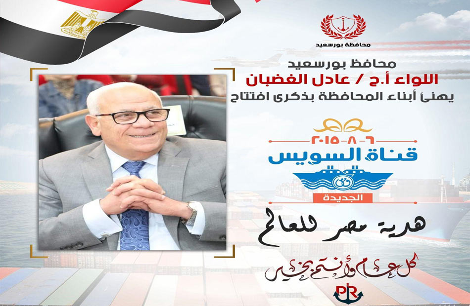 محافظ بورسعيد يهنئ أبناء المحافظة بمناسبة ذكرى افتتاح قناة السويس الجديدة