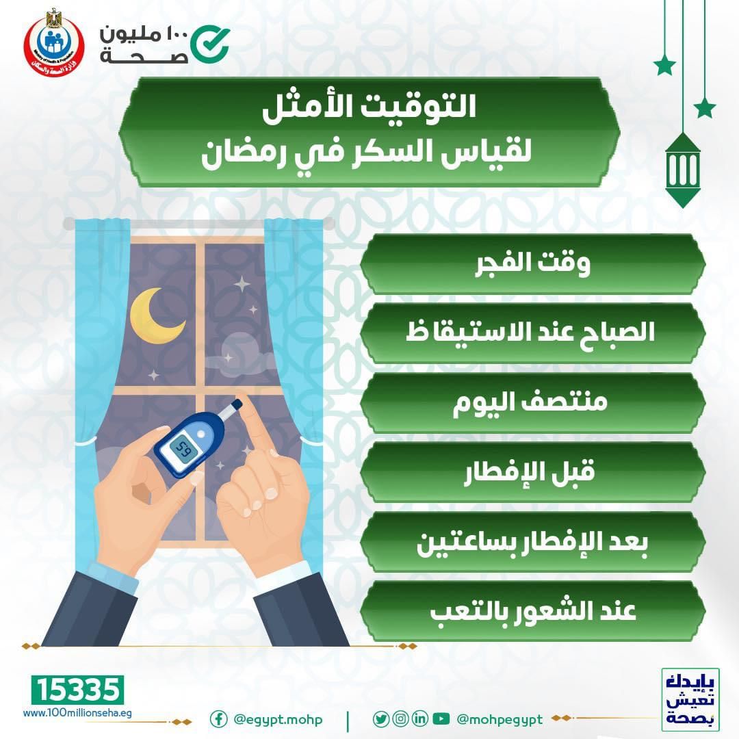 الصحة : 6 مواعيد مناسبة لقياس السكر فى رمضان ... انفوجراف