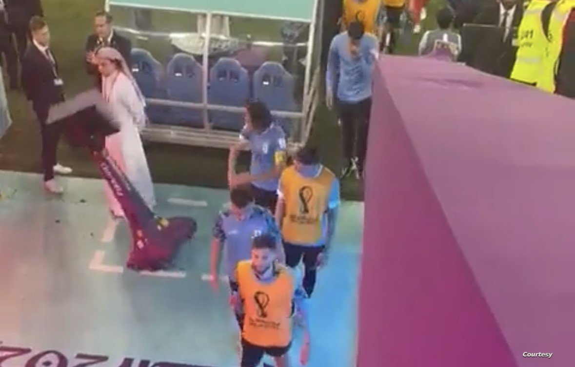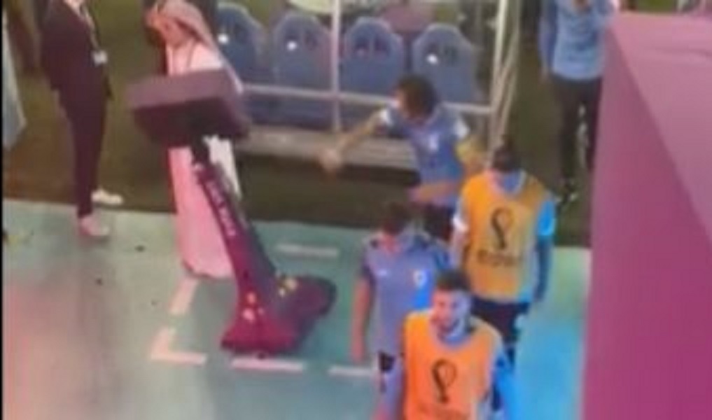 كافاني يضرب شاشة " الفار " اعتراضا على حكم مباراة أوروجواي وغانا