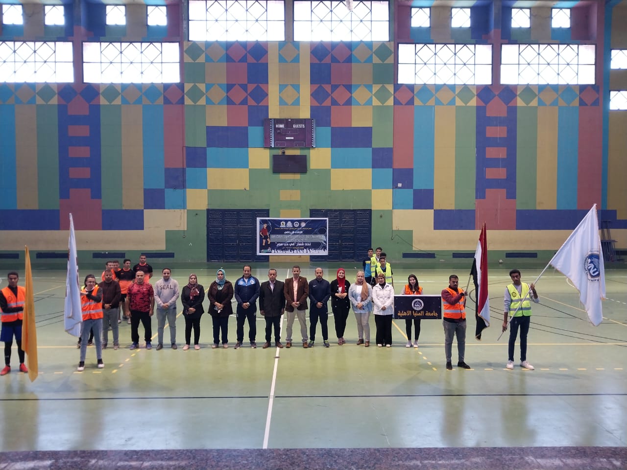 لقاء رياضي بين جامعة المنيا والجامعة الأهلية في مباراة لكرة قدم