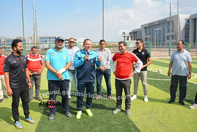 رئيس جامعة دمياط يشارك بمباراة كرة قدم ضمن فعاليات اليوم الرياضى