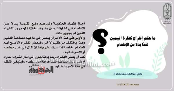 ما حكم إخراج كفارة اليمين نقدًا بدلًا من الإطعام؟ مجمع البحوث الإسلامية يوضح