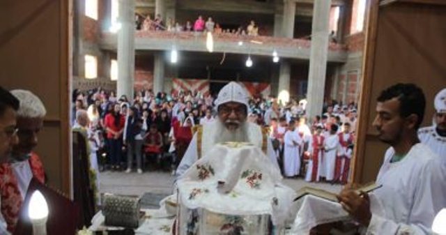 الكنيسة تصلى أول قداس بكنيسة السيدة العذراء ببنى مهدى بالمنيا