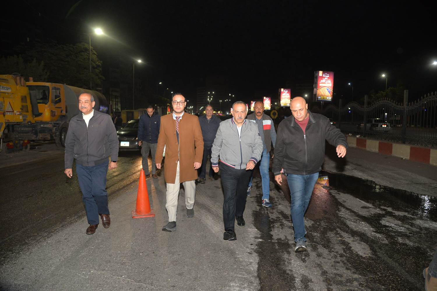 محافظ القليوبية يتابع تركيب الهيكل المعدني لكوبري مشاة بمحور العصار