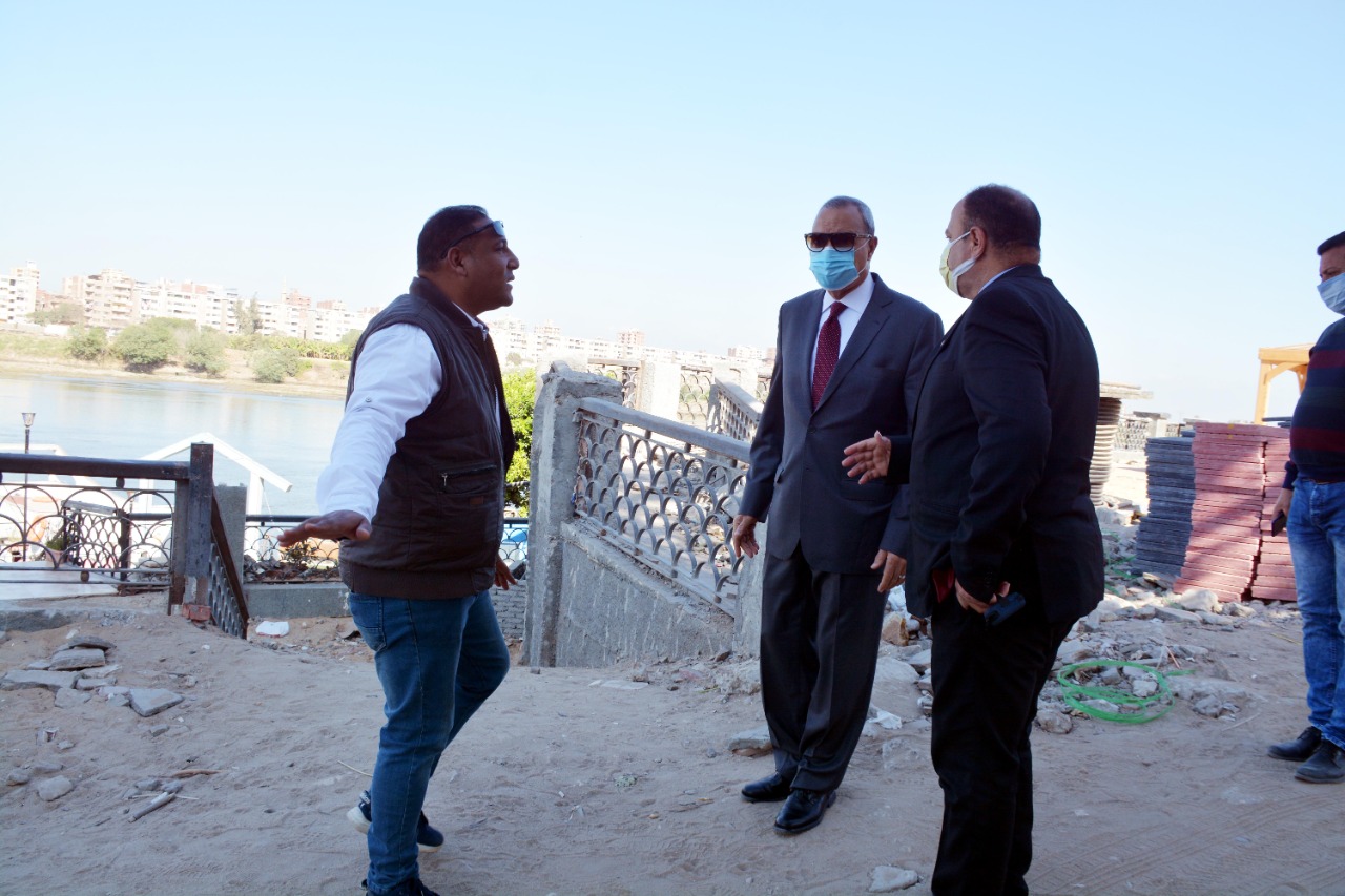 محافظ القليوبية يتفقد أعمال تطوير كورنيش النيل بمدينة بنها