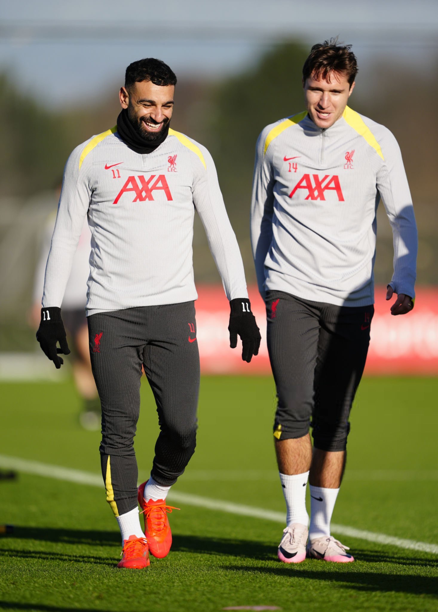 شاهد محمد صلاح مع كييزا في تدريبات ليفربول أمس .. فيديو