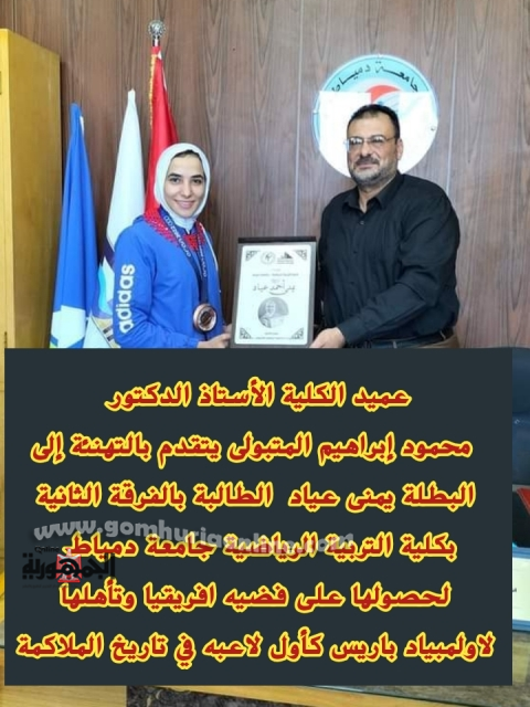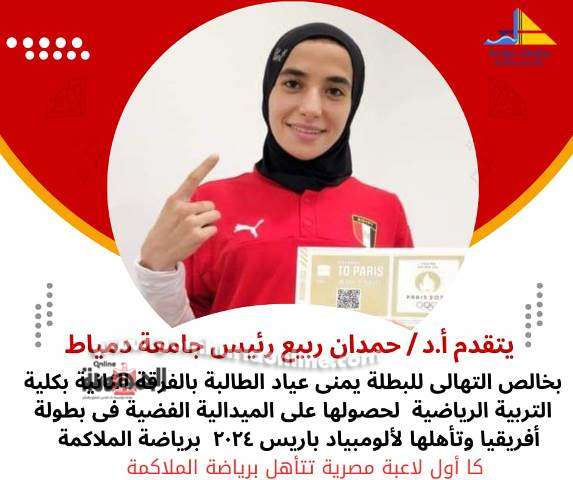 رئيس جامعةدمياط يهنئ البطلة يمنى عياد لتأهلها لأولمبياد باريس٢٠٢٤