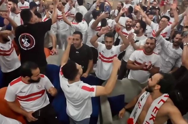 لاعبو الزمالك يحتفلون مع الجماهير بعد التأهل لنهائي السوبر - شاهد