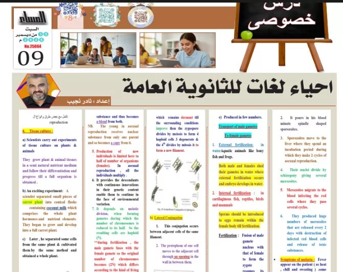 لطلاب لغات.. مراجعة الاحياء للثانوية العامة 2026