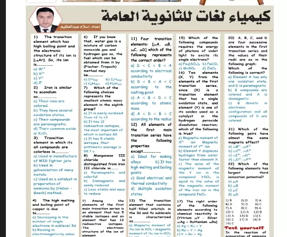 مراجعة في مادة الكيمياء لغات للثانوية العامة 2026
